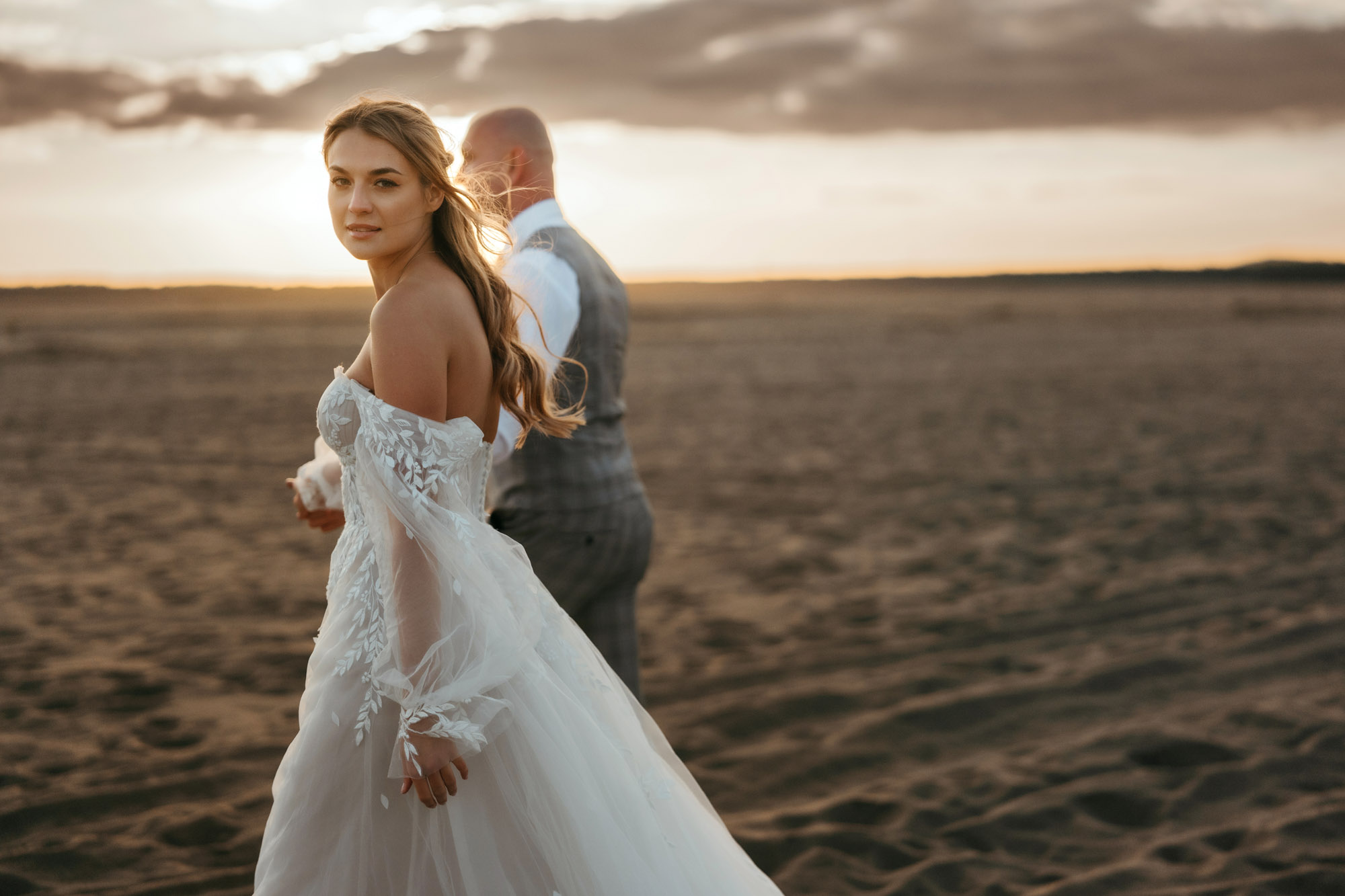 Na Pustyni Błędowskiej czas jakby zwolnił. Wśród złocistych wydm, w świetle zachodzącego słońca, Ola i Mariusz stworzyli niezwykły klimat – pełen bliskości, czułości i spokoju. Ich spojrzenia i gesty, naturalne i niewymuszone, pięknie współgrały z surowym krajobrazem pustyni. To sesja, w której prostota natury spotkała się z prawdziwymi emocjami – bez pośpiechu, bez pozowania, za to z ogromem miłości.
